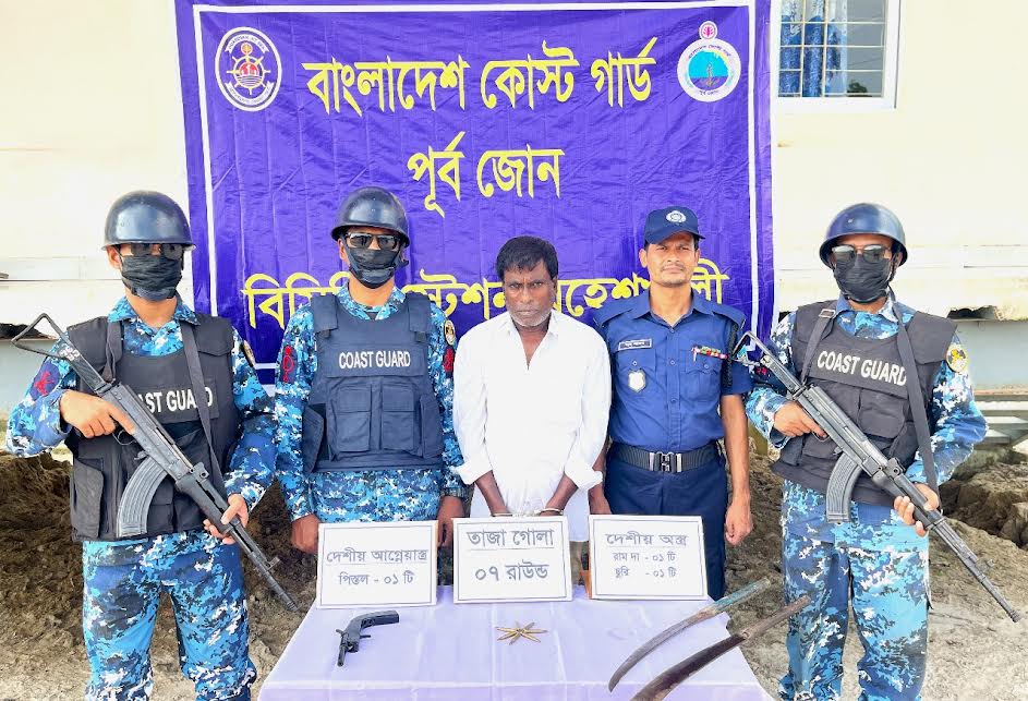 তিনি বলেন, গোপন সংবাদের ভিত্তিতে ১৭ জুলাই বৃহস্পতিবার দুপুর ২ টায় কোস্ট গার্ড স্টেশন মহেশখালী এবং পুলিশের সমন্বয়ে কক্সবাজারের মহেশখালী থানাধীন মোহাম্মদ শাহ ঘোনা সংলগ্ন ফকির জোম এলাকায় যৌথ অভিযান পরিচালনা করা হয়। অভিযান চলাকালীন উক্ত এলাকার একটি বাড়িতে তল্লাশি চালিয়ে ১ টি দেশীয় আগ্নেয়াস্ত্র, ২ টি দেশীয় অস্ত্র ও ৭ রাউন্ড তাজা গোলা সহ ছানাউল্লাহ (৫৩) কে আটক করা হয়।