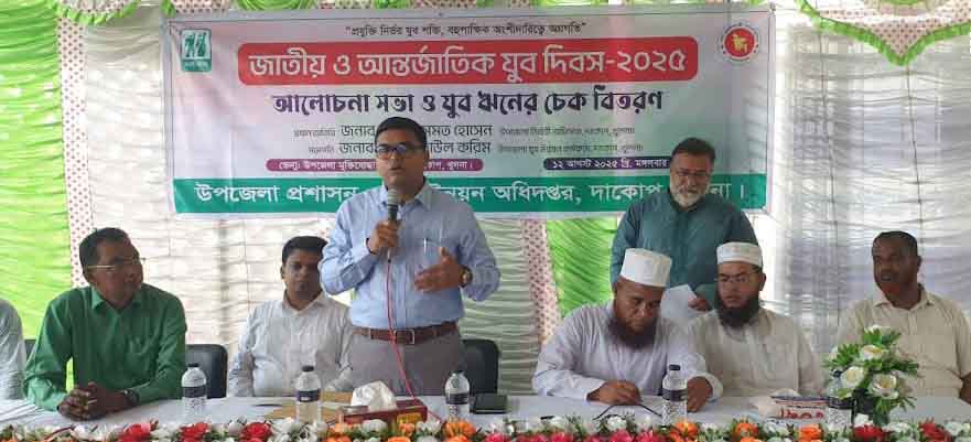 দাকোপ প্রতিনিধি:: “প্রযুক্তি নির্ভর যুব শক্তি, বহুপাক্ষিক অংশদারিত্বে অগ্রগতি” এই প্রতিপাদ্য বিষয়কে সামনে রেখে দাকোপে জাতীয় ও আন্তর্জাতিক যুব দিবস-২০২৫ পালন উপলক্ষ্যে আলোচনা সভা এবং যুব ঋনের চেক বিতরণ করা হয়েছে। উপজেলা প্রশাসন ও যুব উন্নয়ন অধিদপ্তর আয়োজনে মঙ্গলবার সকাল সাড়ে ৯ টায় উপজেলা মুক্তিযোদ্ধা কমপ্লেক্স হল রুমে উপজেলা যুব উন্নয়ন কর্মকর্তা মোঃ রেজাউল করিমের সভাপতিত্বে অনুষ্ঠিত সভায় প্রধান অতিথির বক্তৃতা করেন উপজেলা নির্বাহী অফিসার মোঃ আসমত হোসেন। বিশেষ অতিথি হিসেবে উপস্থিত ছিলেন উপজেলা সহকারী কমিশনার (ভূমি) যুবায়ের জাহাঙ্গীর, উপজেলা সমাজসেবা কর্মকর্তা প্রজিত রায়, উপজেলা জামায়াতে ইমলামী ভারপ্রাপ্ত আমির মাওলানা আক্তারুজ্জামান, সাধারণ সম্পাদক অধ্যাপক অহিদুজ্জামান, ইসলামী আন্দোলন উপজেলা সভাপতি মাওলানা ইলিয়াস হোসাইনসহ বিভিন্ন দপ্তর প্রধান, যুব উন্নয়ন দপ্তরের কর্মকর্তা কর্মচারী ও উপকারী ভোগীবৃন্দ। সভা শেষে যুবক ও যুব মহিলাদের সপথ পাঠ ও ঋনের চেক বিতরণ করেন অনুষ্ঠানের প্রধান অতিথি। উল্লেখ্য এবছর উপজেলয় ১২ জনা যুবক ও যুব মহিলাদের মাঝে ১৪ লক্ষ ৫০ হাজার টাকার ঋনের চেক বিতরণ করা হয়।