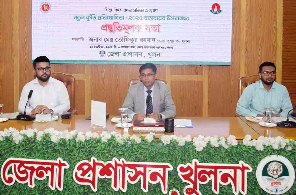 নিজস্ব প্রতিনিধি:: বাংলাদেশ টেলিভিশন (বিটিভি) এর জনপ্রিয় শিশু-কিশোরদের প্রতিযোগিতামূলক অনুষ্ঠান ‘নতুন কুঁড়ি-২০২৫’ খুলনা-১ অঞ্চলের প্রাথমিক বাছাই সফলভাবে বাস্তবায়ন উপলক্ষ্যে প্রস্তুতিমূলক সভা বুধবার বিকালে খুলনার জেলা প্রশাসক মোঃ তৌফিকুর রহমানের সভাপতিত্বে তাঁর সম্মেলনকক্ষে অনুষ্ঠিত হয়।