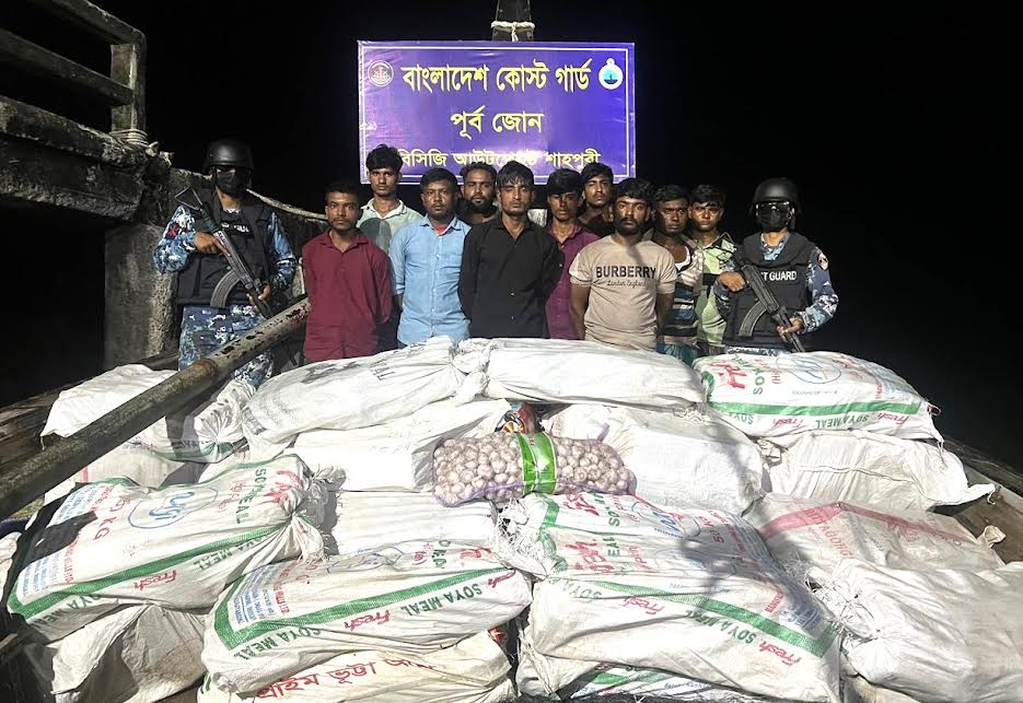তিনি বলেন, গোপন সংবাদের ভিত্তিতে জানা যায়, একটি অসাধু চক্র বাংলাদেশি পণ্যের বিনিময়ে ইয়াবা-মদ সহ অন্যান্য মাদকদ্রব্য মায়ানমার হতে বাংলাদেশে পাচার করবে। প্রাপ্ত তথ্যের ভিত্তিতে গত ১৮ সেপ্টেম্বর ২০২৫ তারিখ রাত ১১ টায় কোস্ট গার্ড জাহাজ কামরুজ্জামান কর্তৃক সেন্টমার্টিন ছেড়াদ্বীপ সংলগ্ন সমুদ্র এলাকায় একটি বিশেষ অভিযান পরিচালনা করা হয়। অভিযান চলাকালীন উক্ত এলাকায় সন্দেহজনক একটি ফিশিং বোটে তল্লাশি চালিয়ে অবৈধভাবে শুল্ক-কর ফাঁকি দিয়ে মায়ানমারে পাচারের উদ্দেশ্যে বহনকৃত প্রায় ৩৭ লক্ষ ৭০ হাজার টাকা মূল্যের ১০,০০০ কেজি ডাল, ১ লক্ষ ৫০ হাজার পিস মশার কয়েল, ২৫০০ কেজি রসুন, ১,০০০ কেজি টেস্টিং সল্ট, ১০,০০০ পিস রয়েল টাইগার এনার্জি ড্রিঙ্কস, ২,৫০০ কেজি পেঁয়াজসহ ১০ জন পাচারকারীকে আটক করা হয়।