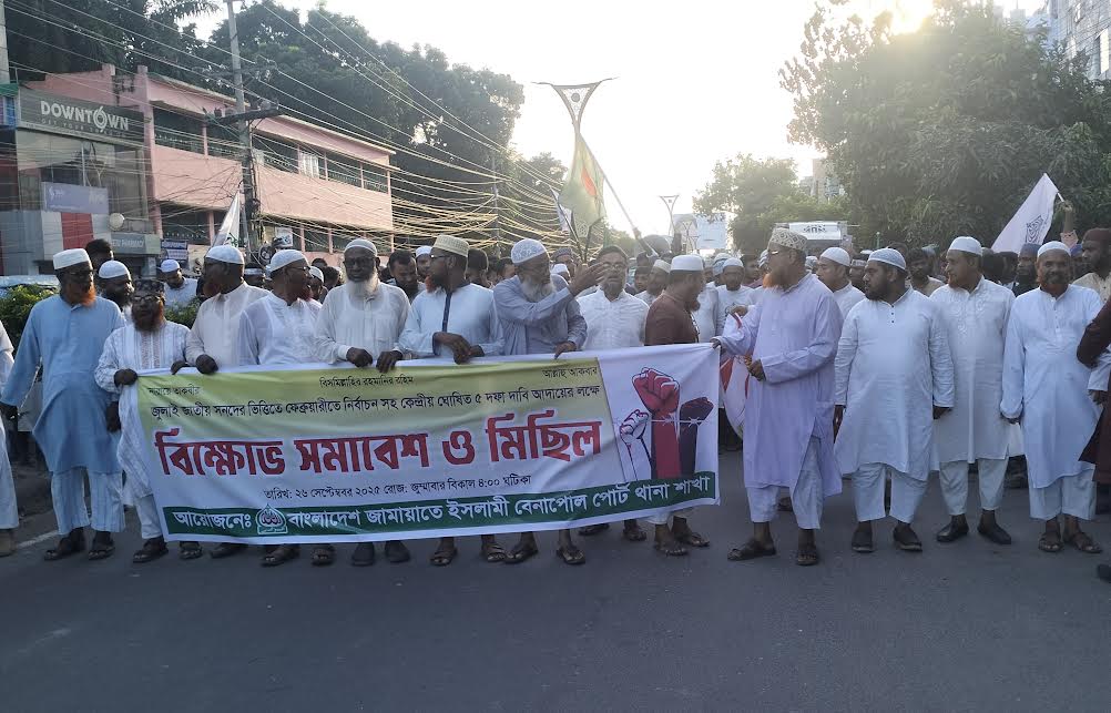 শুক্রবার (২৬ সেপ্টেম্বর) বিকেলে বেনাপোল বাজারের রহমান চেম্বারের সামনে থেকে মিছিলটি শুরু হয়ে বাজারের প্রধান প্রধান সড়ক প্রদক্ষিণ শেষে গাজিপুর কেন্দ্রীয় জামে মসজিদ এলাকায় গিয়ে শেষ হয়। এতে কে জামায়াতের কেন্দ্রীয় নেতাসহ শত শত নেতাকর্মী ও সমর্থক অংশ নেন।