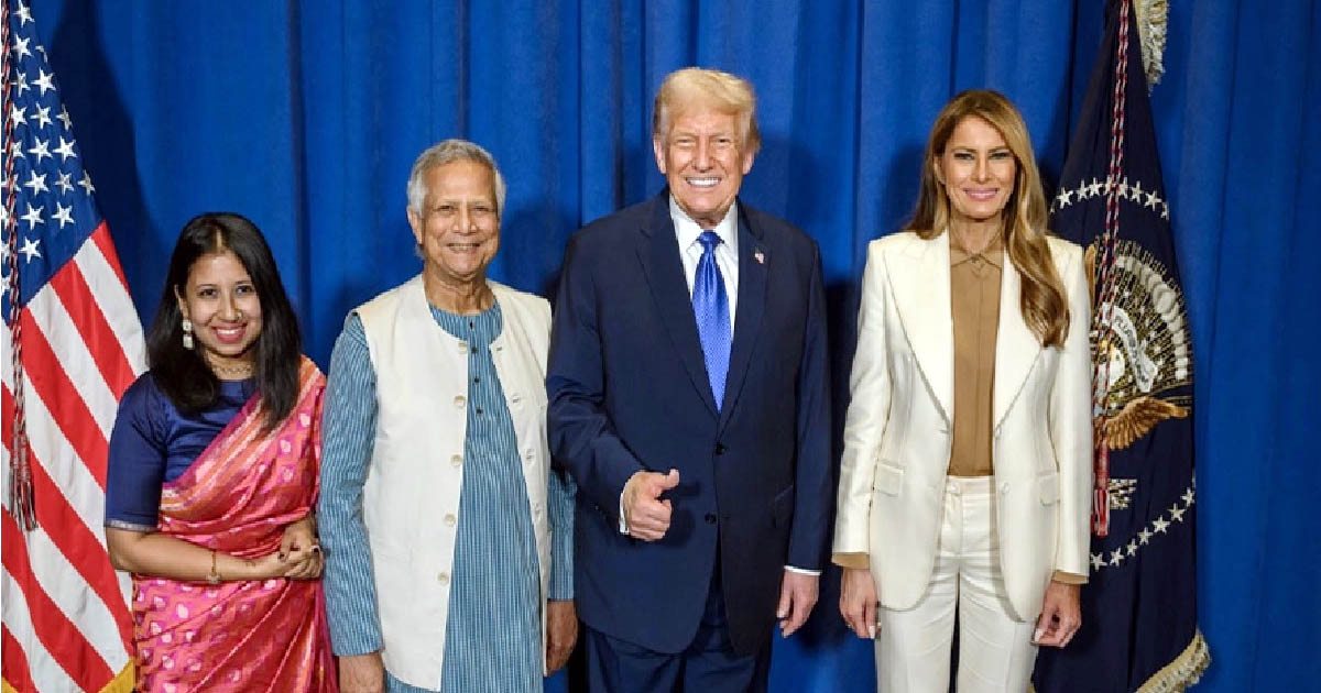 প্রেস উইংয়ের পাঠানো এক বার্তায় বলা হয়, ২৩ সেপ্টেম্বর নিউইয়র্কে মার্কিন প্রেসিডেন্ট আয়োজিত এক সংবর্ধনা অনুষ্ঠানে বাংলাদেশের প্রধান উপদেষ্টা অধ্যাপক মুহাম্মদ ইউনূস এবং তার মেয়ে দীনা ইউনূসের সঙ্গে ছবি তোলেন মার্কিন প্রেসিডেন্ট ডোনাল্ড ট্রাম্প এবং ফার্স্ট লেডি মেলানিয়া ট্রাম্প।