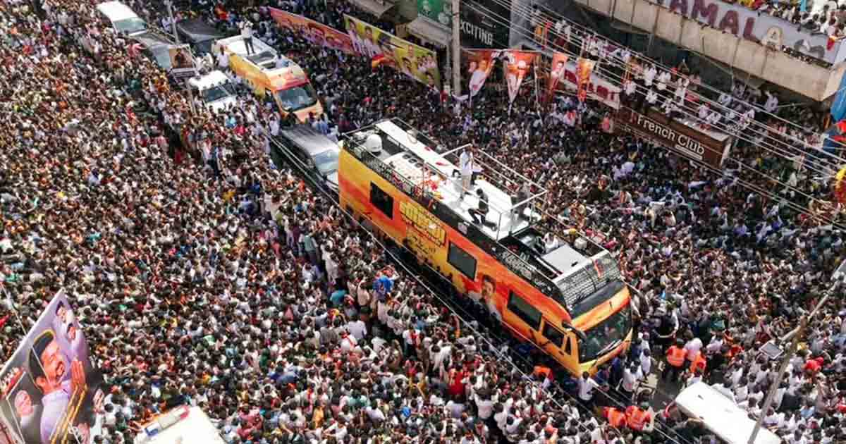 আন্তর্জাতিক ডেস্ক:: ভারতের দক্ষিণাঞ্চলীয় রাজ্য চেন্নাইয়ের রাজধানী তামিলনাড়ুতে দেশটির রাজনীতিক ও অভিনেতা থালাপতি বিজয়ের রাজনৈতিক দল তামিলাগা ভেটরি কাজাগমের (টিভিকে) জনসভায় পদদলিত হয়ে নিহতের সংখ্যা বেড়ে ৩৯ জনে পৌঁছেছে।