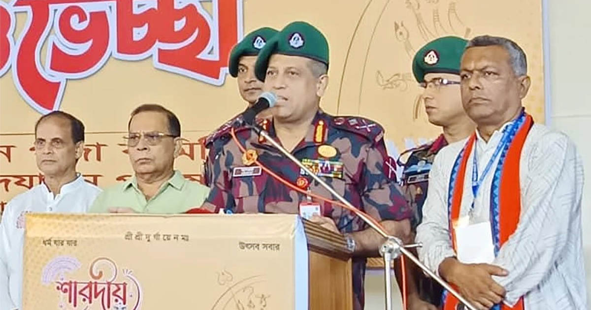 ডেস্ক:: এবারের দুর্গাপূজা সৌহার্দ্যপূর্ণ পরিবেশে অনুষ্ঠিত হচ্ছে মন্তব্য করে বর্ডার গার্ড বাংলাদেশ-বিজিবি'র মহাপরিচালক মেজর জেনারেল মোহাম্মদ আশরাফুজ্জামান সিদ্দিকী বলেছেন, যার যার ধর্মীয় উৎসব সবাই যাতে নির্বিঘ্নে উদযাপন করতে পারে সেই লক্ষ্যে বিজিবি কাজ করে যাচ্ছে। বাকি সময়টুকুতে সবার সম্মিলিত প্রচেষ্টায় এবারের দুর্গাপূজা অত্যন্ত সুন্দর ও সৌহার্দ্যপূর্ণ পরিবেশে সম্পন্ন হবে বলেও প্রত্যাশা ব্যক্ত করেন বিজিবি মহাপরিচালক।