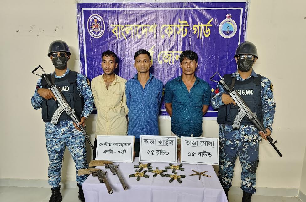তিনি বলেন, গোপন সংবাদের ভিত্তিতে গত ১ অক্টোবর বুধবার বিকাল ৪ টায় কোস্ট গার্ড স্টেশন মহেশখালী এর একটি অপারেশন দল কক্সবাজারের মহেশখালী থানাধীন কেরুনতলী সংলগ্ন এলাকায় একটি বিশেষ অভিযান পরিচালনা করা হয়। অভিযান চলাকালীন ওই এলাকায় তল্লাশি চালিয়ে অস্ত্র ও গোলাবারুদ ক্রয়-বিক্রয়ের সময় ২টি দেশীয় আগ্নেয়াস্ত্র, রাইফেলের ৫ রাউন্ড তাজা গোলা ও শট গানের জন্য ব্যবহৃত ২৫ রাউন্ড বিদেশি তাজা কার্তুজসহ ৩ জন কুখ্যাত সন্ত্রাসীকে আটক করা হয়। জব্দকৃত আলামত ও আটকৃত ব্যক্তিদের পরবর্তী আইনানুগ ব্যবস্থা গ্রহণের কার্যক্রম প্রক্রিয়াধীন রয়েছে।