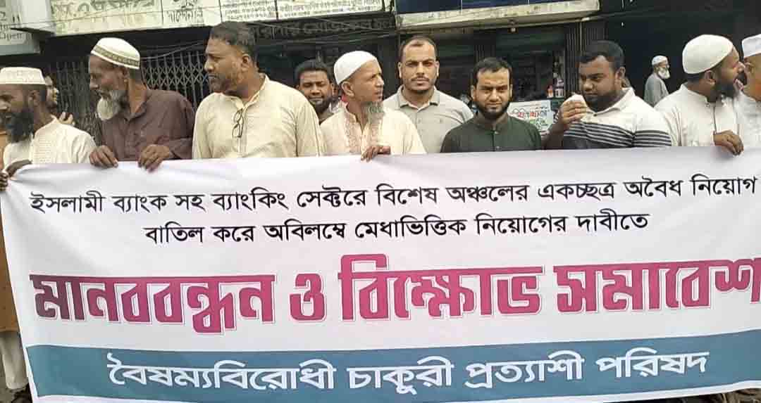 এ সময় ইসলামী ব্যাংক গ্রাহক ফোরাম ও বৈষম্যবিরোধী চাকুরী প্রত্যাশীরা মানববন্ধন কর্মসূচি পালন করে।