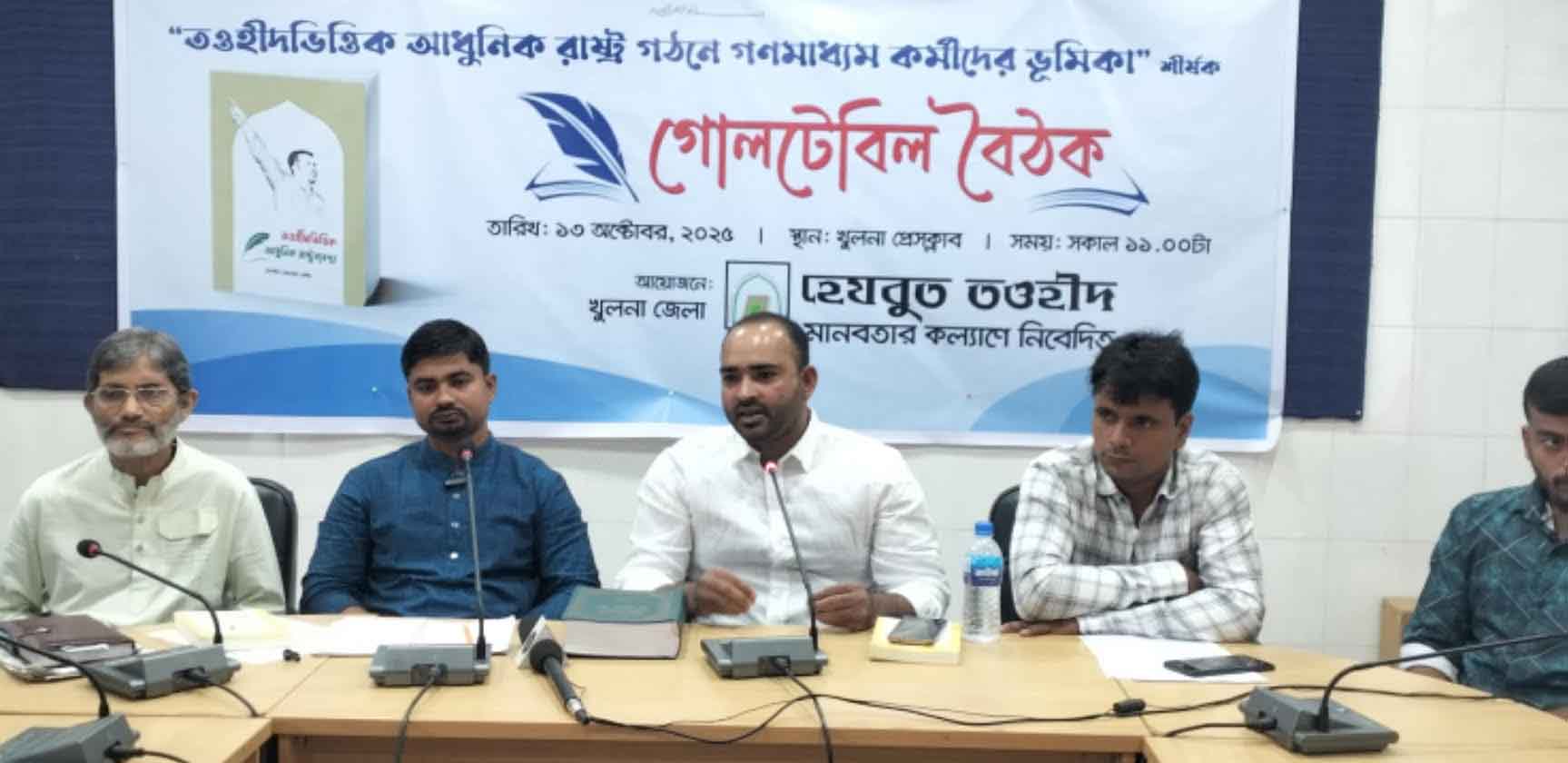 মোঃ জাহিদুল ইসলাম:: তওহিদ ভিত্তিক আধুনিক রাষ্ট্র গঠনে গণমাধ্যম কর্মীদের ভূমিকা শীর্ষক গোল টেবিল বৈঠক অনুষ্ঠিত হয়েছে।