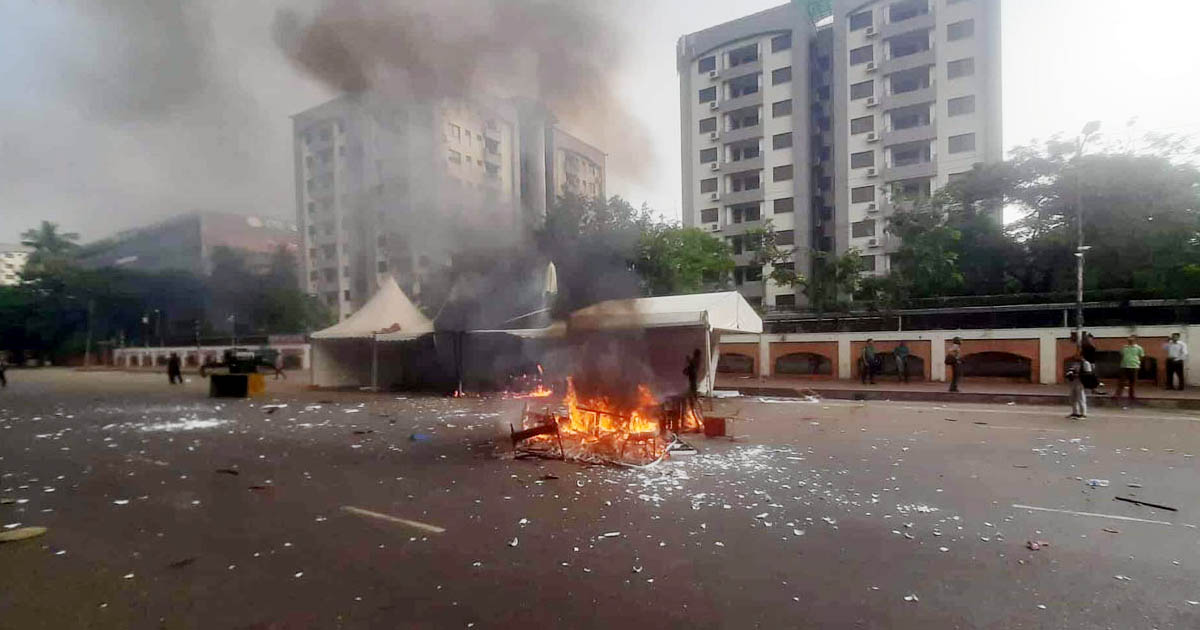 তিনি বলেন, গতকালের ঘটনায় এখন পর্যন্ত চারটি মামলা দায়ের করা হয়েছে। চারটির মধ্যে একটি মামলা একজন ট্রাফিক পুলিশ বাদী হয়ে করেছেন। বাকি তিনটি মামলা থানা পুলিশ বাদী হয়ে করেছে। মামলায় আসামি করা হয়েছে সন্ত্রাসী, দুর্বৃত্তকারী, অনিষ্টকারী, ক্ষতিসাধনকারী, নাশকতাকারী ও ফ্যাসিবাদী মতাদর্শের লোকজনকে। এই চার মামলার সব আসামি অজ্ঞাত। এই চার মামলায় অজ্ঞাত পরিচয়ের আসামি করা হয়েছে ৮০০ থেকে ৯০০ জনকে। চারটি মামলার মধ্যে একটি মামলার অভিযোগ সংরক্ষিত এলাকায় জোরপূর্বক প্রবেশের। অপরগুলো হলো– পুলিশের ওপর হামলা, গাড়ি ভাঙচুর ও কন্ট্রোল রুম পোড়ানোর মামলা।