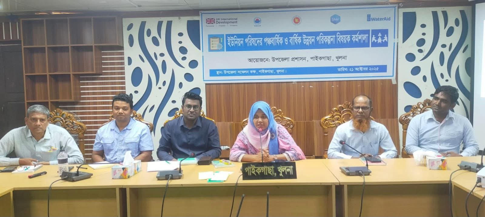 পাইকগাছা (খুলনা) প্রতিনিধি:: পাইকগাছায় ইউনিয়ন পরিষদের পঞ্চবার্ষিক ও বার্ষিক উন্নয়ন পরিকল্পনা বিষয়ক কর্মশালা অনুষ্ঠিত হয়েছে। মঙ্গলবার (২১ অক্টোবর) সকালে উপজেলা পরিষদ মিলনায়তনে দাতা সংস্থা ওয়াটার এইড বাংলাদেশ এবং উন্নয়ন সংস্থা নবলোক-এর সহযোগিতায় উপজেলা প্রশাসনের আয়োজনে এ কর্মশালা অনুষ্ঠিত হয়।