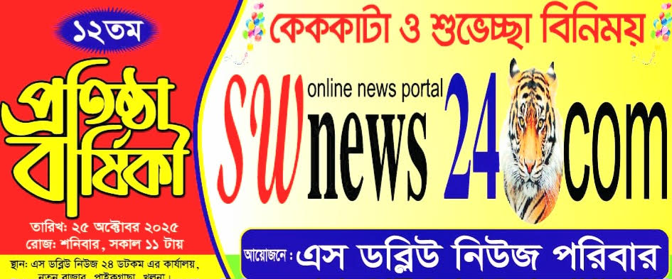 এম জালাল উদ্দীন:পাইকগাছা:: খুলনা জেলার দক্ষিণাঞ্চলের অন্যতম জনপ্রিয় অনলাইন নিউজ পোর্টাল “এসডব্লিউ নিউজ ২৪” সাফল্যের সঙ্গে অতিক্রম করেছে গৌরবময় ১১ বছর। পাঠকদের ভালোবাসা, সাংবাদিকদের নিষ্ঠা ও নিরপেক্ষ সংবাদ পরিবেশনের ধারাবাহিকতায় সংবাদমাধ্যমটি পদার্পণ করছে ১২তম বছরে (এক যুগে)।