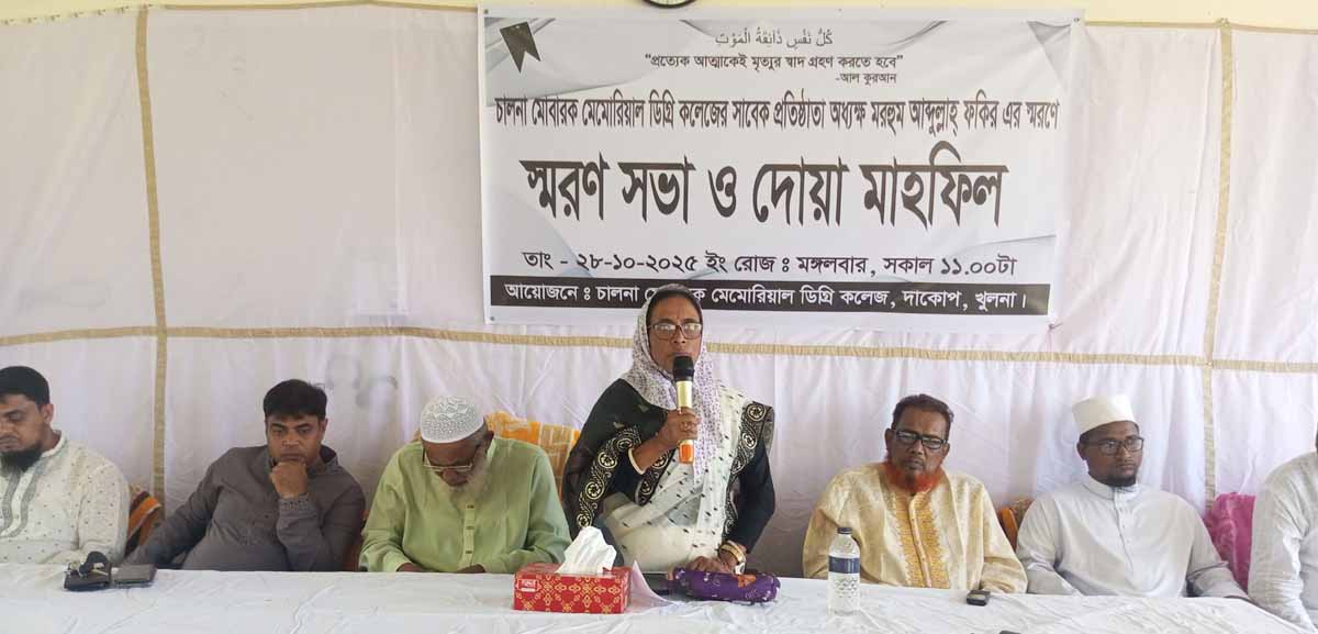 দাকোপ প্রতিনিধি:: চালনা মোবারক মেমোরিয়াল ডিগ্রি কলেজের সাবেক প্রতিষ্ঠাতা অধ্যক্ষ মরহুম আব্দুল্লাহ ফকিরের স্মরণ সভা ও দোয়া মাহফিল অনুষ্ঠিত হয়েছে।