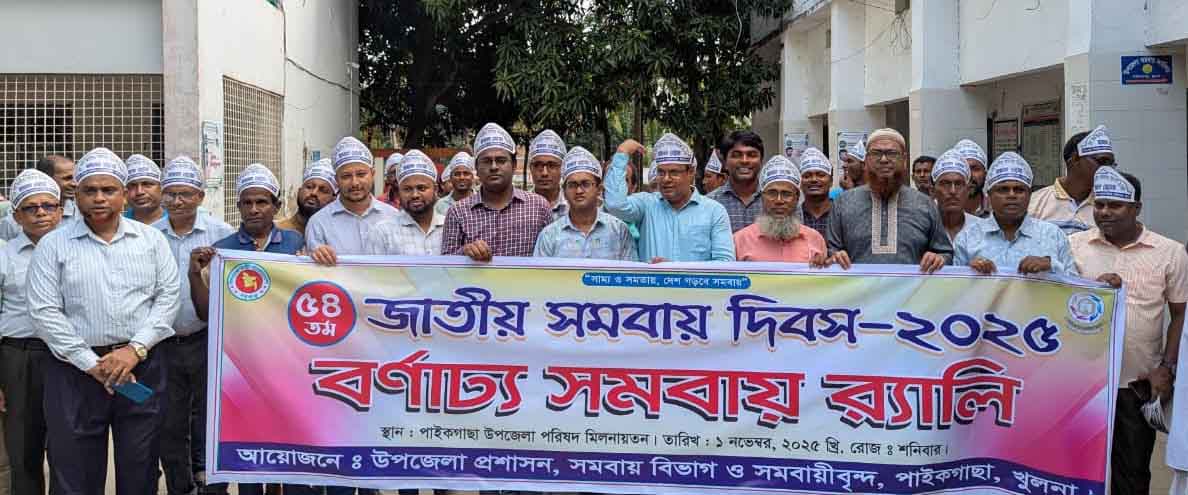 পাইকগাছা (খুলনা) প্রতিনিধি::"সাম্য ও সমতায় ' দেশে গড়বে সমবায় " প্রতিপাদ্যকে সামনে রেখে বর্ণাঢ্য আয়োজনের মধ্য দিয়ে খুলনার পাইকগাছায় পালিত হয়েছে ৫৪তম জাতীয় সমবায় দিবস-২০২৫। এ উপলক্ষে শনিবার (১ নভেম্বর) সকালে উপজেলা পরিষদ চত্বরে জাতীয় পতাকা উত্তোলন ও বর্ণাঢ্য র্যালি শেষে উপজেলা পরিষদ মিলনায়তনে আলোচনা সভা অনুষ্ঠিত হয়।
