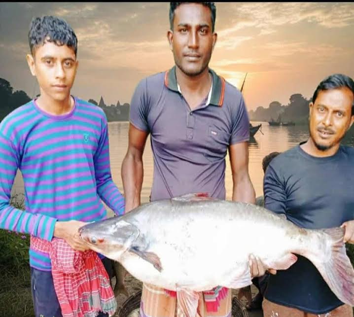রোববার (২ নভেম্বর) দুপুরে প্রতিদিনের মতো বড়শি হাতে নদীতে যান বিল্লাল ও রহিম। কিছুক্ষণ অপেক্ষার পর বিল্লালের হুইলে (বড়শিতে) হঠাৎ তীব্র টান অনুভূত হয়। শুরু হয় রোমাঞ্চকর এক লড়াই মাছের সঙ্গে মানুষের। প্রায় ২০ মিনিট খেলিয়ে খেলিয়ে অবশেষে তিনজনের সহযোগিতায় মাছটি পাড়ে (তীরে) তোলা হয়।