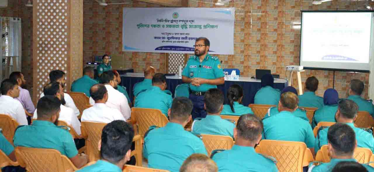 নিজস্ব প্রতিনিধি:: ৪ নভেম্বর মঙ্গলবার সকালে বয়রাস্থ পুলিশ লাইন্সে নির্বাচনী দায়িত্ব সুষ্ঠুভাবে সম্পাদনের লক্ষ্যে পুলিশের দক্ষতা ও সক্ষমতা বৃদ্ধি সংক্রান্ত প্রশিক্ষণ কর্মশালা অনুষ্ঠিত হয়। প্রশিক্ষণ কর্মশালায় শুভ উদ্বোধন ও স্বাগত বক্তব্য প্রদান করেন খুলনা মেট্রোপলিটন পুলিশ কমিশনার মোঃ জুলফিকার আলী হায়দার।