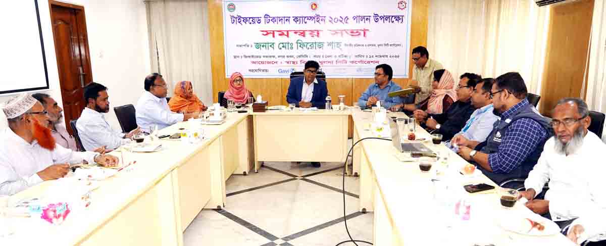 নিজস্ব প্রতিনিধি:: খুলনা মহানগরীতে টাইফয়েড টিকাদান ক্যাম্পেইন-২০২৫ সফলভাবে বাস্তবায়নের লক্ষ্যে আয়োজিত ২য় সমন্বয় সভা বুধবার বিকেলে নগর ভবনের জিআইজেড মিলনায়তনে অনুষ্ঠিত হয়। সভায় সভাপতিত্ব করেন কেসিসি প্রশাসক মো: ফিরোজ শাহ্।