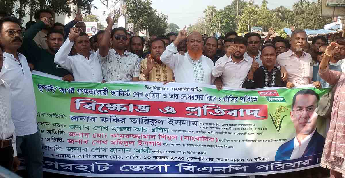 বাগেরহাট প্রতিনিধি:: শেখ হাসিনাকে দেশে ফিরিয়ে এনে গণহত্যার দায়ে ফাঁসির দাবিতে বিক্ষোভ মিছিল ও প্রতিবাদ সমাবেশ করেছে বাগেরহাট বিএনপি পরিবার ।