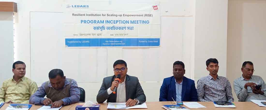 দাকোপ প্রকিনিধি::দাকোপে বে-সরকারী উন্নয়ন সংস্থা লিডার্স এর রেজিলিয়ান্ট ইনস্টিটিউশন ফর স্কেলিং আপ এমপাওয়ারমেন্ট (রাইজ) প্রকল্পের অবহিতকরন সভা অনুষ্ঠিত হয়েছে। কমিক্ রিলিফ লন্ডন, ইউকে’র অর্থায়নে বুধবার সকাল সাড়ে ১০ টায় উপজেলা পরিষদ মিলনায়তনে লিডার্স ডিরেক্টর ফিন্যান্স এন্ড অশারেশন পিন্টু কুমার দত্তের সভাপতিত্বে অনুষ্ঠিত প্রকল্পের অবহিতরণ সভায় প্রধান অতিথির বক্তৃতা করেন উপজেলা নির্বাহী অফিসার মোঃ আসমত হোসেন। সভায় বিশেষ অতিথির বক্তৃতা করেন উপজেলা প্রাণিসম্পদ কর্মকর্তা ডাঃ বঙ্কিম কুমার হালদার, উপজেলা সিনিয়র মৎস্য কর্মকর্তা প্রদীপ কুমার দাম, উপজেলা সমাজসেবা কর্মকর্তা প্রজিত রায়, উপজেলা যুব উন্নয়ন কর্মকর্তা রেজাউল করিম। পাওয়ার পয়েন্ট উপস্থপনা করেন রাইজ প্রকল্পের প্রোগ্রাম ম্যানেজার শারমিন আরা লিনা। রাইজ প্রকল্পের প্রজেক্ট অফিসার বদরুন্নেসা মিলির পরিচালনায় এ সময় অন্যান্যের মধ্যে বক্তৃতা করেন দাকোপ প্রেসক্লাবের সাবেক সভাপতি মোঃ শিপন ভূইয়া, সাবেক সাধারণ সম্পাদক মোজাফফার হোসেন, বানিশান্তা ইউনিয়ন পরিষদ প্যানেল চেয়ারম্যান এনায়েত আলী শরীফ, লাউডোব ইউনিয়ন প্যানেল চেয়ারম্যান লিপিকা মন্ডল, আশার প্রদীপ এজিও পরিচালক পরিতোষ মৃধা, উন্নয়ন কর্মী সোহেল মাসুদ শোয়েব, আলোসিয়াস গাইন, প্রকল্পের মাঠ কর্মী স্বর্না মন্ডল ও মানবিতা বিশ্বাস প্রমুখ। অবতিকরণ সভায় বক্তরা বলেন, রাইজ প্রকল্পের মাধ্যমে দাকোপ উপজেলা বানিশান্তা ও লাইডোব ইউনিয়নে জলবায়ু ক্ষতিগ্রস্ত জনগনের অধিকার প্রতিষ্ঠায় অবদান রাখা এবং লক্ষিত উপকারভোগীদের জলবায়ু সহনশীল জীবিকায় উন্নীত করা মূল লক্ষ।
