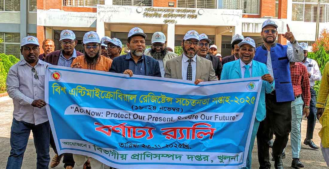 নিজস্ব প্রতিনিধি:: বিভাগীয় প্রাণিসম্পদ দপ্তর, খুলনা বিভাগের উদ্যোগে বিশ্ব এন্টিমাইক্রোবিয়াল রেজিষ্টেন্স সচেতনতা সপ্তাহ ২০২৫ উদযাপিত হয়েছে। এ উপলক্ষে র্যালি ও আলোচনা সভা অনুষ্ঠিত হয়।