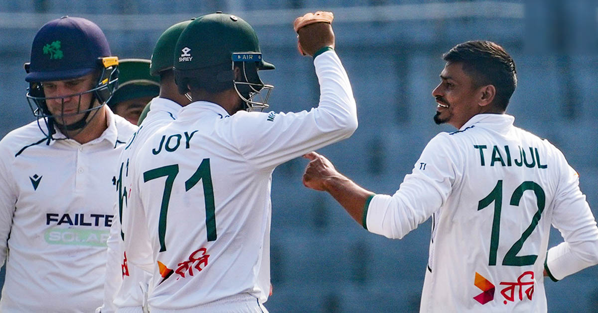 কিন্তু সেখানেই স্পিন ত্রয়ী তাইজুল, মিরাজ ও মুরাদ মিলে বাংলাদেশকে এনে দেন কাঙ্ক্ষিত স্বস্তি। হোয়ের বিদায়ের পর আর ফিরে দাঁড়াতে পারেনি আয়ারল্যান্ড। প্রথম সেশন পেরিয়ে হঠাৎই ম্যাচ গড়িয়ে যায় স্রেফ কয়েক বলের ব্যবধানে বাংলাদেশি উল্লাসময় সমাপ্তিতে।