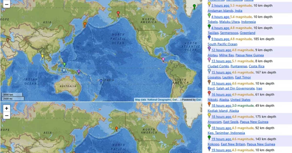 আন্তর্জাতিক ডেস্ক:: গত ২৪ ঘণ্টায় বিশ্বের বিভিন্ন জায়গায় ৯৪টি ভূমিকম্প হয়েছে বলে জানিয়েছে বিশ্বব্যাপী ভূমিকম্পের তথ্য নজরে রাখা জনপ্রিয় ওয়েবসাইট ‘আর্থকোয়াকট্র্যাকার ডটকম’।