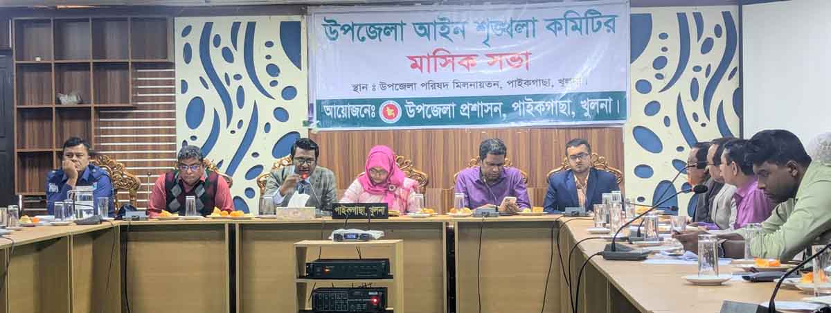পাইকগাছা (খুলনা) প্রতিনিধি:: পাইকগাছা উপজেলা আইনশৃঙ্খলা কমিটির মাসিক সভা অনুষ্ঠিত হয়েছে। মঙ্গলবার (২৬ নভেম্বর) সকালে উপজেলা পরিষদ মিলনায়তনে উপজেলা প্রশাসনের আয়োজনে এ সভা অনুষ্ঠিত হয়। সভায় সভাপতিত্ব করেন উপজেলা নির্বাহী অফিসার মাহেরা নাজনীন।