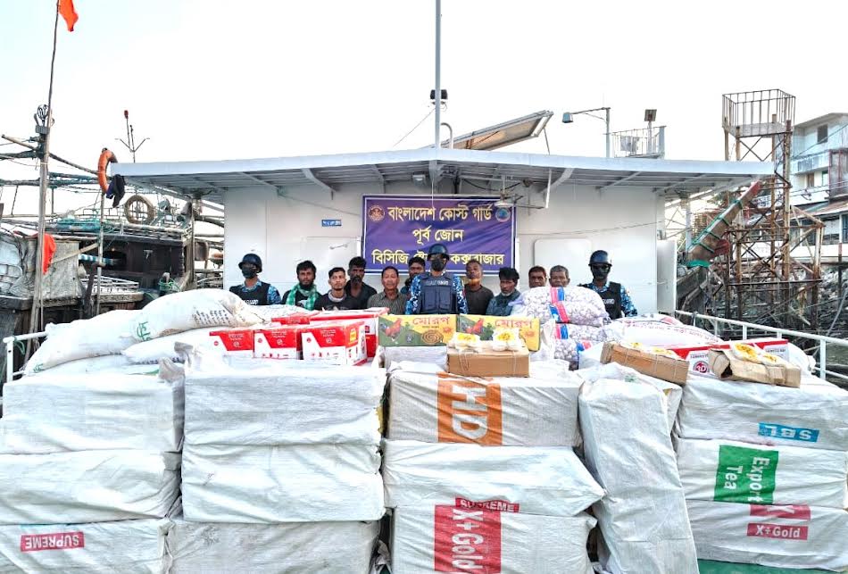 তিনি বলেন, গোপন সংবাদের ভিত্তিতে জানা যায়, একটি অসাধু চক্র বাংলাদেশি পণ্যের বিনিময়ে ইয়াবা-মদ সহ অন্যান্য মাদকদ্রব্য মায়ানমার হতে বাংলাদেশে পাচার করবে। প্রাপ্ত তথ্যের ভিত্তিতে গত ২৪ নভেম্বর ২০২৫ তারিখ সোমবার সকাল ১১টায় কোস্ট গার্ড স্টেশন কক্সবাজার কর্তৃক কক্সবাজারের বাকখালী মোহনা সংলগ্ন এলাকায় একটি বিশেষ অভিযান পরিচালনা করা হয়। অভিযান চলাকালীন উক্ত এলাকায় সন্দেহজনক ১টি ফিশিং ট্রলার তল্লাশি করে অবৈধভাবে শুল্ক-কর ফাঁকি দিয়ে মাদকের বিনিময়ে মায়ানমারে পাচারের উদ্দেশ্যে বহনকৃত প্রায় ১৩ লক্ষ ৭০ হাজার টাকা মূল্যের ২৯ বস্তা ময়দা, ২৮ হাজার পিস গ্যাস লাইট, ৪ হাজার ৮০০ প্যাকেট কয়েল, ২৮ বস্তা রসুন, ৬২৪ প্যাকেট সাবান, ৭০ বস্তা ডিএপি সার, ৯৬ বোতল সয়াবিন তেলসহ ৯ জন পাচারকারীকে আটক করা হয়।