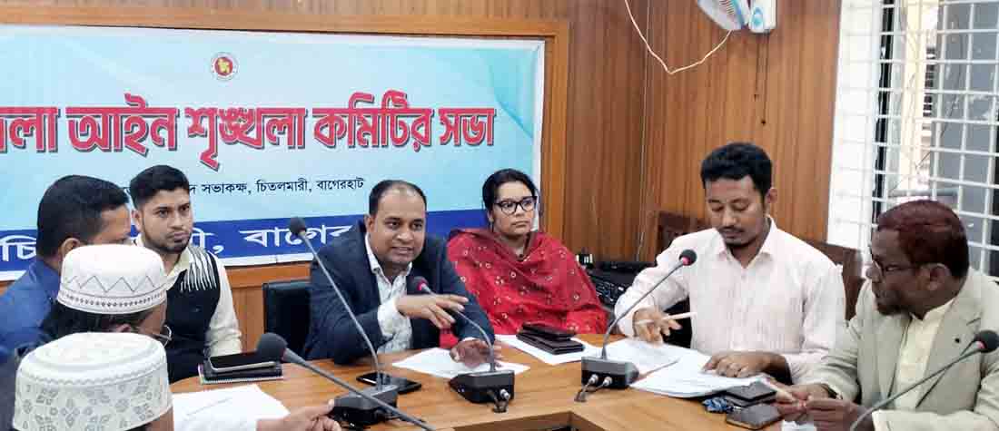 চিতলমারী প্রতিনিধি :: বাগেরহাটের চিতলমারী উপজেলা আইন-শৃঙ্খলা কমিটির মাসিক সভা অনুষ্ঠিত হয়েছে। বৃহস্পতিবার (২৭ নভেম্বর) সকাল ১১ টায় উপজেলা সভাকক্ষে এ সভা হয়। সভায় উপজেলা নির্বাহী কর্মকর্তা (ইউএনও) মোঃ সাজ্জাদ হোসেন সভাপতিত্ব করেন।