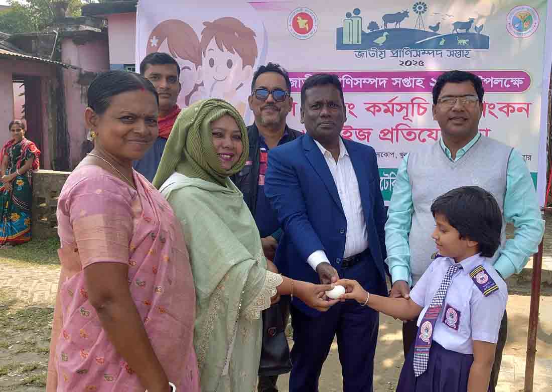 দাকোপ প্রতিনিধি:: জাতীয় প্রাণিসম্পদ সপ্তাহ-২০২৫ উপলক্ষে দাকোপে স্কুল ফিডিং কর্মসূচি, চিত্রাংকন ও কুইজ প্রতিযোগিতা অনুষ্ঠিত হয়েছে। রবিবার (৩০ নভেম্বর) বেলা ১১টায় দাকোপ উপজেলা সদর চালনা এন সি ব্লু বার্ড সরকারি প্রাথমিক বিদ্যালয়ের মাঠ প্রাঙ্গনে উপজেলা প্রাণিসম্পদ দপ্তর ও ভেটেরিনারি হাসপাতালের আয়োজনে প্রতিটি শিশুকে সিদ্ধ করা ডিম খাওয়ানোর মধ্যে দিয়ে এ কর্মসূচি অনুষ্ঠিত হয়। উপজেলা প্রাথমিক শিক্ষা অফিসার রেক্সনা খাতুনের সভাপতিত্বে এ সময় প্রধান অতিথি হিসেবে অত্র বিদ্যালয়ের প্রতিটি শিশুদের মাঝে সিদ্ধ করা ডিম হাতে তুলে দেন উপজেলা প্রাণিসম্পদ কর্মকর্তা ডাঃ বঙ্কিম কুমার হালদার। এ সময় বিশেষ অতিথি হিসেবে উপস্থিত ছিলেন সহকারি উপজেলা প্রাথমিক শিক্ষা অফিসার দিপ্পল বিশ্বাস, সহকারী উপজেলা প্রাথমিক শিক্ষা অফিসার মোঃ ইসলামুল হক মিঠু, অত্র শিক্ষা প্রতিষ্ঠানের প্রধান শিক্ষক শিউলী রানী গাইন,সহকারি শিক্ষক পল্লব বিশ্বাসসহ অত্র শিক্ষা প্রতিষ্ঠানের সহকারি শিক্ষক- শিক্ষিকাবৃন্দ,অভিভাবকবৃন্দ।