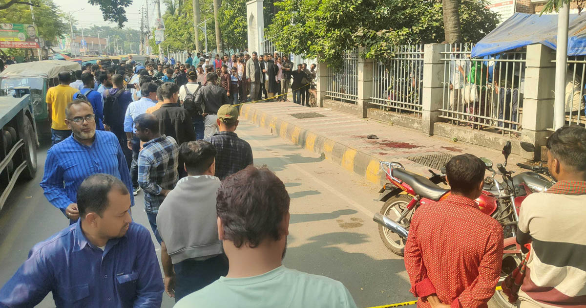 প্রত্যক্ষদর্শী সূত্রে জানা গেছে, জামিনে থাকা দুজন আসামি আদালতে হাজিরা দিয়ে আদালত ফটকের সামনে মোটরসাইকেল রেখে চা পান করতে দাঁড়িয়েছিলেন। এ সময় চার থেকে পাঁচজন দুর্বৃত্ত হেঁটে এসে তাদের লক্ষ্য করে গুলি ছোড়ে।