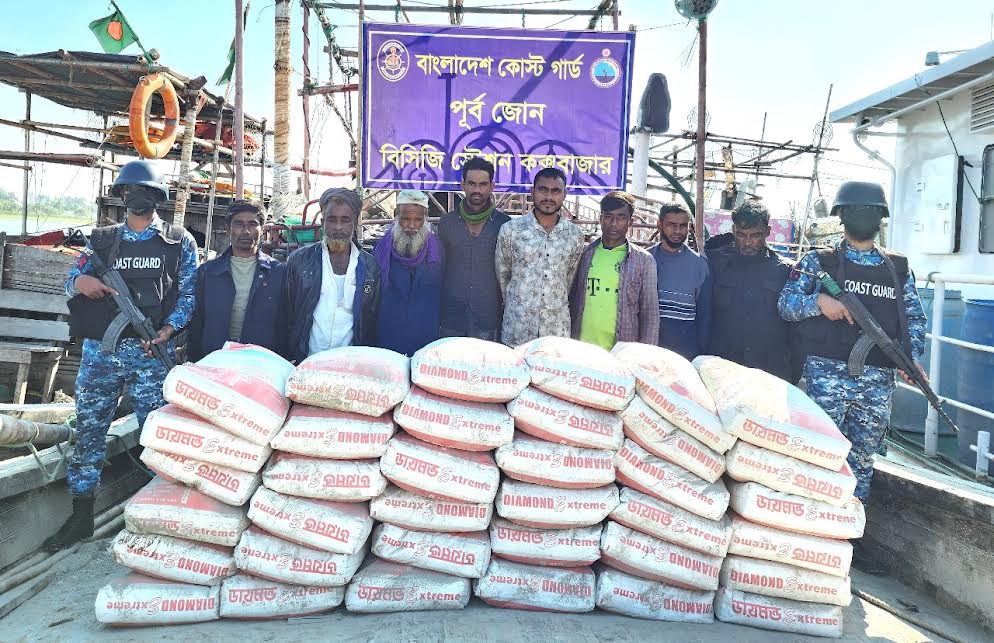 তিনি বলেন, গোপন সংবাদের ভিত্তিতে ৫ ডিসেম্বর ২০২৫ তারিখ শুক্রবার মধ্যরাত ১২টায় কোস্ট গার্ড স্টেশন কক্সবাজার কর্তৃক কক্সবাজারের বাকখালী নদীর মোহনা সংলগ্ন এলাকায় একটি বিশেষ অভিযান পরিচালনা করা হয়। অভিযান চলাকালীন উক্ত এলাকায় ১টি সন্দেহজনক ফিশিং বোটে তল্লাশি চালিয়ে অবৈধভাবে শুল্ক-কর ফাঁকি দিয়ে মায়ানমারে পাচারের উদ্দেশ্যে বহনকৃত প্রায় ১ লক্ষ ৮৭ হাজার ৫০০ টাকা মূল্যের ৩৭৫ বস্তা সিমেন্টসহ ৮ জন পাচারকারীকে আটক করা হয়।