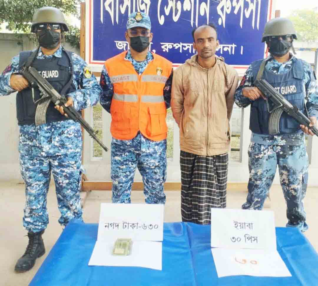 বটিয়াঘাটা প্রতিনিধি:: বটিয়াঘাটা উপজেলার বালিয়াডাঙ্গার ফুলবাড়ী জামে মসজিদ এলাকা থেকে রুপসা কোষ্ট গার্ড এলাকার একটি দল মাদক বিরোধী অভিযান পরিচালনা করে।অভিযান পরিচালনা কালে ফুলবাড়ী ওমর আলী শেখের পুত্র শারাফাত শেখ (৩৫) কে ৩০ পিচ ইয়াবা সহ হাতেনাতে আটক করে কোষ্ট গার্ড। যার আনুমানিক মূল্য ৯ হাজার টাকা।আটককৃত মালামাল সহ কোষ্ট গার্ড পুলিশ আসামীকে বটিয়াঘাটা থানায় সোপর্দ করলে বটিয়াঘাটা থানায় একটি নিয়মিত মামলা রুজু হয়