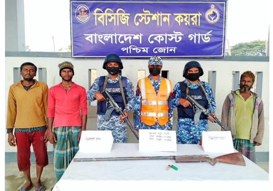 মনির হোসেন, মোংলা:: গোপন সংবাদের ভিত্তিতে সুন্দরবনের কয়রা নদীর নাগজোড়া খাল এলাকায় অভিযান পরিচালনা করে কুখ্যাত বনদস্যু দুলাভাই বাহিনীর কাছে মুক্তিপণের দাবিতে জিন্মি থাকা ৪ জেলেকে উদ্ধার করেছে কোস্টগার্ডপশ্চিম জোন। এসময় দস্যুবাহিনীর আস্তানায় তল্লাশী করে অস্ত্র ও গুলি জব্দ করে কোস্টগার্ড সদস্যরা।