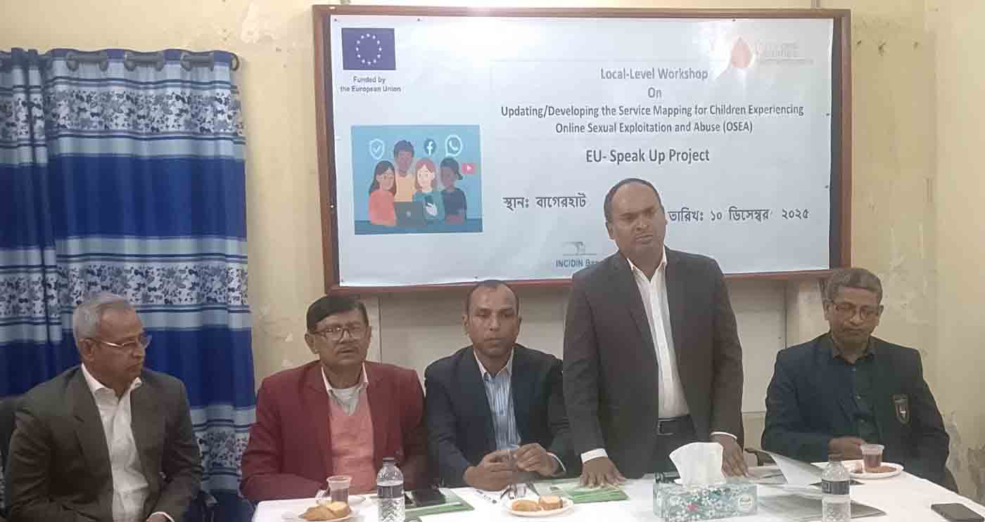 বাগেরহাট প্রতিনিধি:: শিশুদের অনলাইন যৌন শোষণ ও নির্যাতন (ঙঝঊঅ) প্রতিরোধে সেবা সমন্বয় ও সুরক্ষা কাঠামো আরও শক্তিশালী করার লক্ষ্যে বাগেরহাটে সেবা মানচিত্র হালনাগাদ কর্মশালা অনুষ্ঠিত হয়েছে।