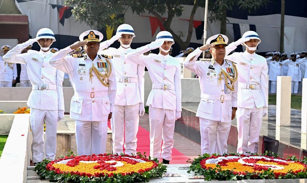 নিজস্ব প্রতিবেদক:: যথাযোগ্য মর্যাদা ও ভাবগাম্ভীর্যের মধ্য দিয়ে মহান মুক্তিযুদ্ধে সর্বোচ্চ আত্মত্যাগকারী বীরশ্রেষ্ঠ শহিদ রুহুল আমিন ও বীর বিক্রম শহিদ মহিবুল্লাহ এর ৫৪তম শাহাদাত বার্ষিকী পালিত হয়েছে। এ উপলক্ষ্যে আজ বুধবার (১০ ডিসেম্বর ) শহিদগণের স্মৃতিস্তম্ভে কমান্ডার খুলনা নৌ অঞ্চল রিয়ার এডমিরাল এ কে এম জাকির হোসেন পুষ্পস্তবক অর্পণ ও গার্ড অব অনার প্রদান করেন। এ সময় খুলনা নৌ অঞ্চলের উল্লেখযোগ্য সংখ্যক কর্মকর্তা ও নৌ সদস্যবৃন্দ উপস্থিত ছিলেন। পরে শহিদদের আত্মার মাগফিরাত কামনা করে বিশেষ মোনাজাত করা হয়।