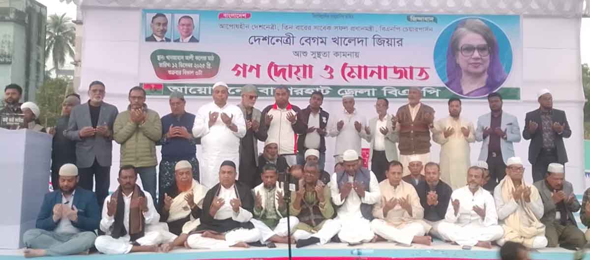 বাগেরহাট প্রতিনিধি:: বেগম খালেদা জিয়ার সুস্থতা কামনায় বাগেরহাটে দোয়া-মোনাজাত অনুষ্ঠিত হয়েছে। শুক্রবার (১২ ডিসেম্বর) বিকালে খানজাহান আলী ডিগ্রী কলেজ মাঠে বাগেরহাট জেলা বিএনপি আয়োজিত দোয়া-মোনাজাত অনুষ্ঠানে প্রধান অতিথি ছিলেন কৃষী বিষয়ক সম্পাদক শামিমুর রহমান শামিম।