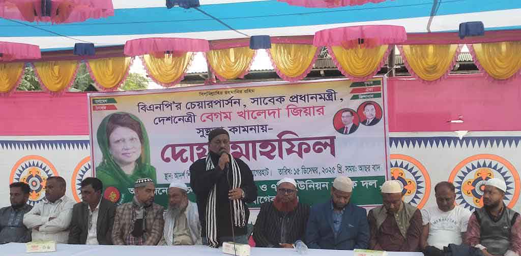 চিতলমারী প্রতিনিধি:: সাবেক প্রধানমন্ত্রী বেগম খালেদা জিয়ার রোগমুক্তি ও দীর্ঘায়ু কামনায় বাগেরহাটের চিতলমারী উপজেলা কৃষক দল দোয়া মাহফিল ও তবারক বিতরণ করেছে। সোমবার (১৫ ডিসেম্বর) বিকেল সাড়ে ৫ টায় চিতলমারী সদরের কেজি স্কুল মাঠে কৃষক দলের আয়োজনে এ দোয়া মাহফিল হয়। দোয়া মাহফিল পরিচালনা করেন হাটখোলা জামে মসজিদের ইমাম ও খতিব মুফতি মোঃ ইকবাল হোসেন। অনুষ্ঠানে প্রধান অতিথি হিসেবে উপস্থিত ছিলেন বাংলাদেশ জাতীয়তাবাদী দল-বিএনপি থেকে বাগেরহাট-১ আসনের মনোনয়ন প্রত্যাশী ও বাগেরহাট জেলা বিএনপির সদস্য ইঞ্জিনিয়ার এ্যাড. মাসুদ রানা।