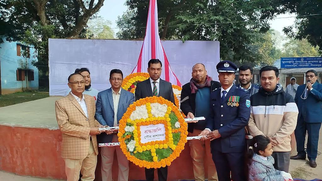 দিবসটি উপলক্ষে আজ মঙ্গলবার (১৬ ডিসেম্বর) সকাল ৮ টায় উপজেলা পরিষদ মাঠে অস্থায়ী ভাবে নির্মিত স্মৃতিসৌধে স্ব- স্ব দপ্তরের পক্ষে পুষ্পস্তবক অর্পণ করেন ,উপজেলা নির্বাহী অফিসার রুবানা তানজিন, সহকারী কমিশনার (ভুমি) ও পৌর প্রশাসক আব্দুল আল মামুন কাওছার শেখ,ঘোড়াঘাট থানার ওসি মো. শহিদুল ইসলাম, উপজেলা স্বাস্থ্য ও পরিবার পরিকল্পনা কর্মকর্তা ডা. মো. সোলায়মান হোসেন মেহেদী, উপজেলা কৃষি অফিসার রফিকুজ্জামান,ঘোড়াঘাট সরকারি কলেজের অধ্যক্ষ এস এম মনিরুল ইসলাম, উপজেলা একাডেমিক সুপারভাইজার ধ্বীরাজ সরকার, পৌর বিএনপির সভাপতি আব্দুস সাত্তার মিলন, বীর মুক্তিযোদ্ধা জগদীশ চন্দ্র প্রমূখ।