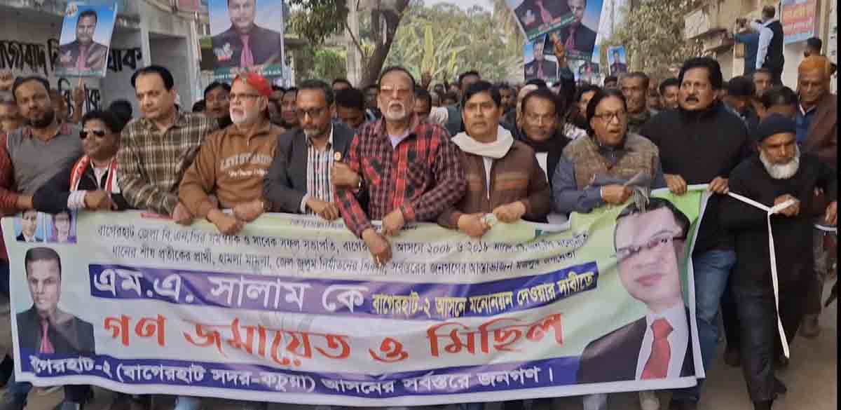বাগেরহাট প্রতিনিধি :: বাগেরহাট জেলা বিএনপির সাবেক সভাপতি ও সমন্বয়ক এম এ সালামকে মনোনয়ন দেওয়ার দাবিতে গন জামায়েত ও বিক্ষোভ মিছিল করেছে বাগেরহাট-২ (সদর ও কচুয়া) আসনে সর্বস্তরের জনগন।