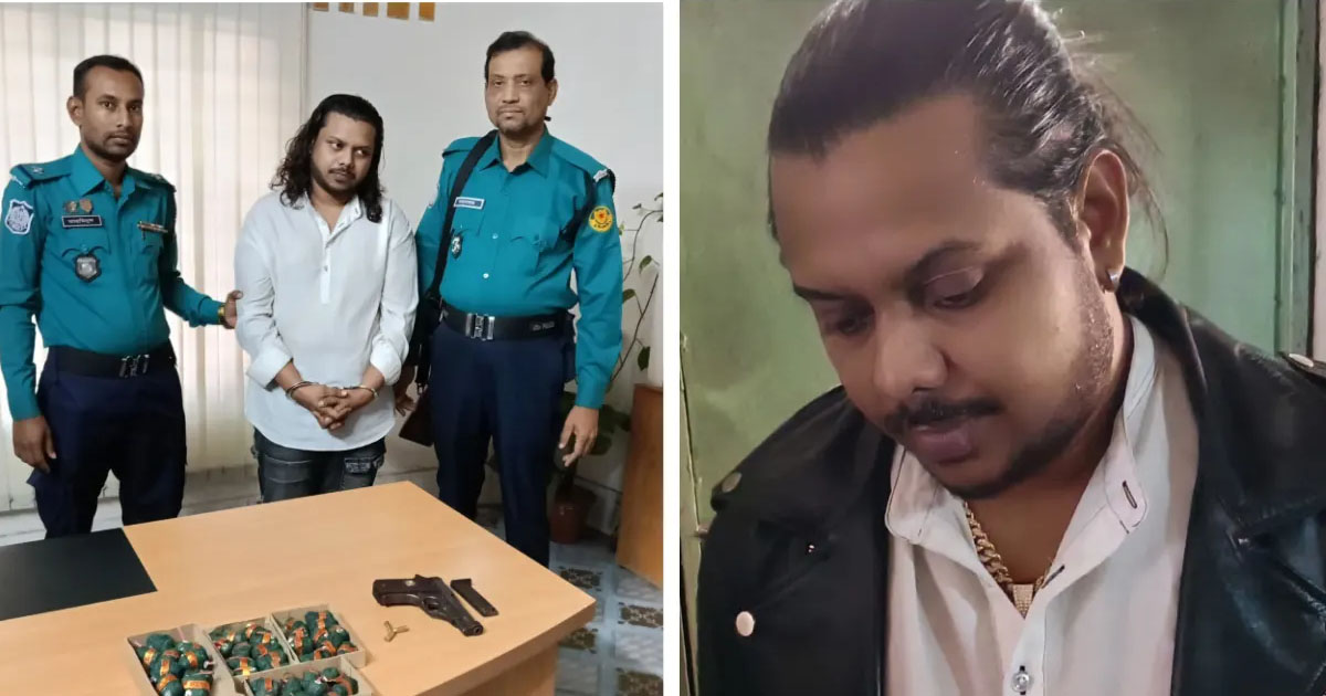 বুধবার বিকেলে রাজধানীর আদাবরের একটি আবাসিক হোটেল থেকে তাঁকে আটক করা হয়। পরে তার দেওয়া তথ্যমতে অভিযান চালিয়ে বিদেশি পিস্তল, গুলি ও বিপুল পরিমাণ বিস্ফোরক দ্রব্য উদ্ধার করা হয়েছে।