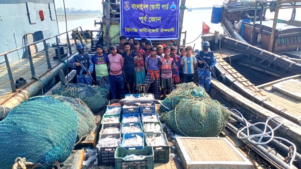 তিনি বলেন, গোপন সংবাদের ভিত্তিতে গত ২৩ ডিসেম্বর মঙ্গলবার মধ্যরাত ১টায় কোস্ট গার্ড কন্টিনজেন্ট বাঁশখালী কর্তৃক চট্টগ্রামের বাঁশখালী থানাধীন খাটখালী নদীর মোহনায় একটি বিশেষ অভিযান পরিচালনা করা হয়। অভিযান চলাকালীন উক্ত এলাকা হতে ১টি অবৈধ আর্টিসানাল ট্রলিং বোট জব্দ করা হয়। জব্দকৃত ট্রলিং বোটে তল্লাশি চালিয়ে প্রায় ২৫ লক্ষ টাকা মূল্যের ৫টি ট্রলিং জাল ও ৬০০০ কেজি সামুদ্রিক মাছসহ ১৬ জন জেলেকে আটক করা হয়।
