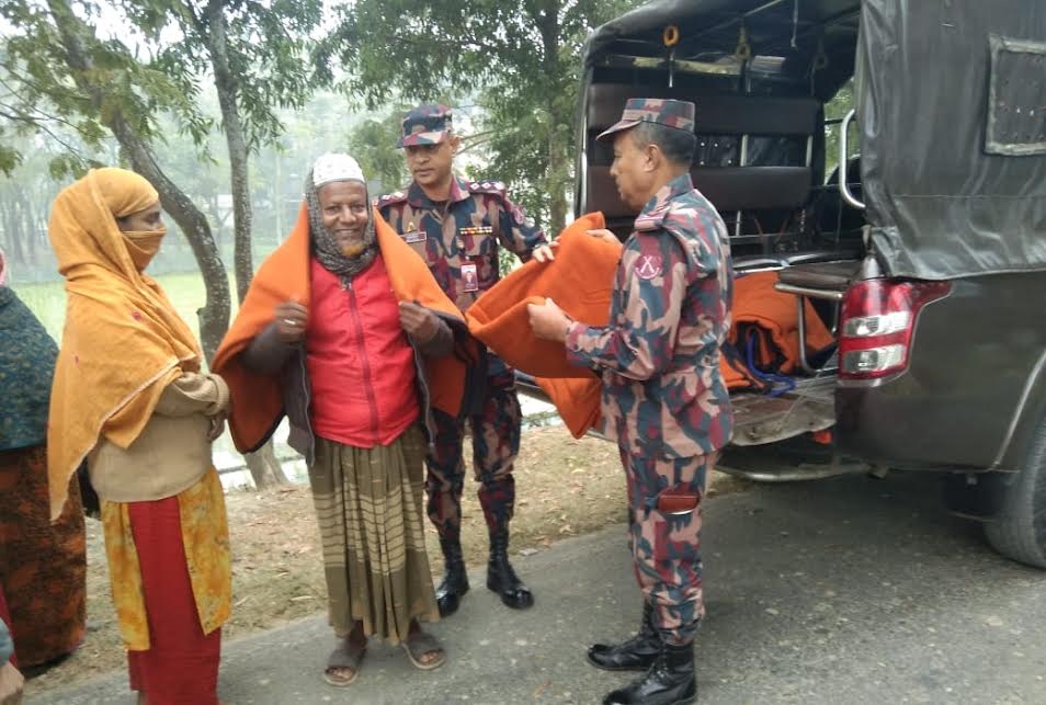 এরই ধারাবাহিকতায় রিজিয়ন সদর দপ্তর, যশোর ও যশোর ব্যাটালিয়ন (৪৯ বিজিবি)’র ব্যবস্থাপনায় যশোরের বিভিন্ন রেল স্টেশনে ও রাস্তার পাশে ছিন্নমুল মানুষের মাঝে শীতবস্ত্র বিতরণ কার্যক্রম অনুষ্ঠিত হয়। শীতবস্ত্র অনুষ্ঠানে যশোর ব্যাটালিয়ন এর উপ-অধিনায়ক মেজর নূর উদ্দিন আহমাদ উপস্থিত থেকে আনুমানিক গরীব, দুঃস্থ ও শীতার্ত মানুষের মাঝে শীতবস্ত্র বিতরণ করেন। বিজিবি সীমান্ত সুরক্ষা, চোরাচালান দমনের পাশাপাশি সমাজের দরিদ্র ও বিপন্ন মানুষের আর্থ-সামাজিক উন্নয়নে পাশে দাঁড়িয়ে আসছে। ভবিষ্যতেও এ ধরনের মানবিক কার্যক্রম অব্যাহত থাকবে। বিজিবি‘র এধরনের কার্যক্রমে স্থানীয় জনসাধারণ ও গণ্যমান্য ব্যক্তিবর্গ এ সময় বিজিবি’র এ মানবিক উদ্যোগের প্রশংসা করেন।