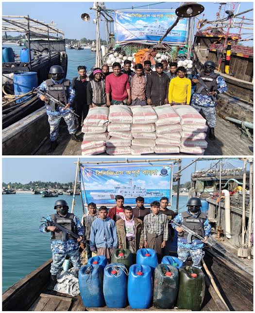 তিনি বলেন, গোপন সংবাদের ভিতিত্তে গত ২ জানুয়ারি শুক্রবার রাত ১০টায় কোস্ট গার্ড জাহাজ অপূর্ব বাংলা কর্তৃক সেন্টমার্টিন হতে দক্ষিণ-পশ্চিম সংলগ্ন সমুদ্র এলাকায় একটি বিশেষ অভিযান পরিচালনা করা হয়। অভিযান চলাকালে উক্ত এলাকায় সন্দেহজনক ১টি ফিশিং বোট তল্লাশি করে অবৈধভাবে শুল্ক-কর ফাঁকি দিয়ে মায়ানমারে পাচারের উদ্দেশ্যে বহনকৃত প্রায় ৩ লক্ষ টাকা মূল্যের ৬ শত বস্তা সিমেন্টসহ ১১ জন বাংলাদেশী পাচারকারীকে আটক করা হয়।