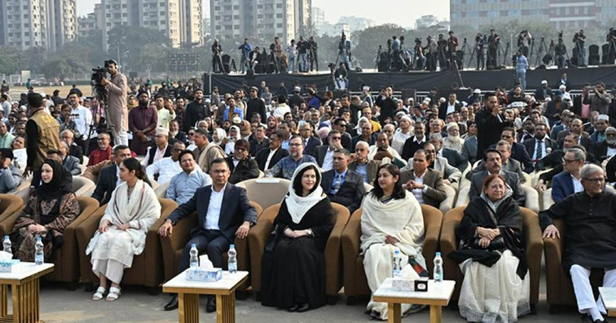 জাতীয় সংসদ ভবনের দক্ষিণ প্লাজার বিশাল চত্বরে আয়োজিত এ অনুষ্ঠানে যোগ দিয়েছেন জিয়া পরিবারের সদস্যরা, শীর্ষ রাজনৈতিক নেতৃবৃন্দ, বিদেশি কূটনীতিক এবং দেশের বিশিষ্ট নাগরিক সমাজ।