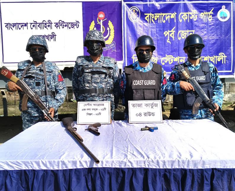 তিনি বলেন, গোপন সংবাদের ভিত্তিতে ১৮ জানুয়ারি রবিবার ভোর ৫টায় কোস্টগার্ড স্টেশন মহেশখালী ও টেকনাফ এবং নৌবাহিনীর সমন্বয়ে কক্সবাজারের মহেশখালী থানাধীন ধলঘাটা উত্তর মুহুরি ঘোনা এলাকায় সন্ত্রাসীদের গোপন আস্তানায় একটি যৌথ অভিযান পরিচালনা করা হয়। অভিযান চলাকালীন সন্ত্রাসীরা যৌথ বাহিনীর উপস্থিতি টের পেয়ে পালিয়ে যায়। পরবর্তীতে, আভিযানিক দল কর্তৃক উক্ত আস্তানায় তল্লাশী চালিয়ে ২ টি দেশীয় আগ্নেয়াস্ত্র ও ৪ রাউন্ড তাজা কার্তুজ জব্দ করা হয়।