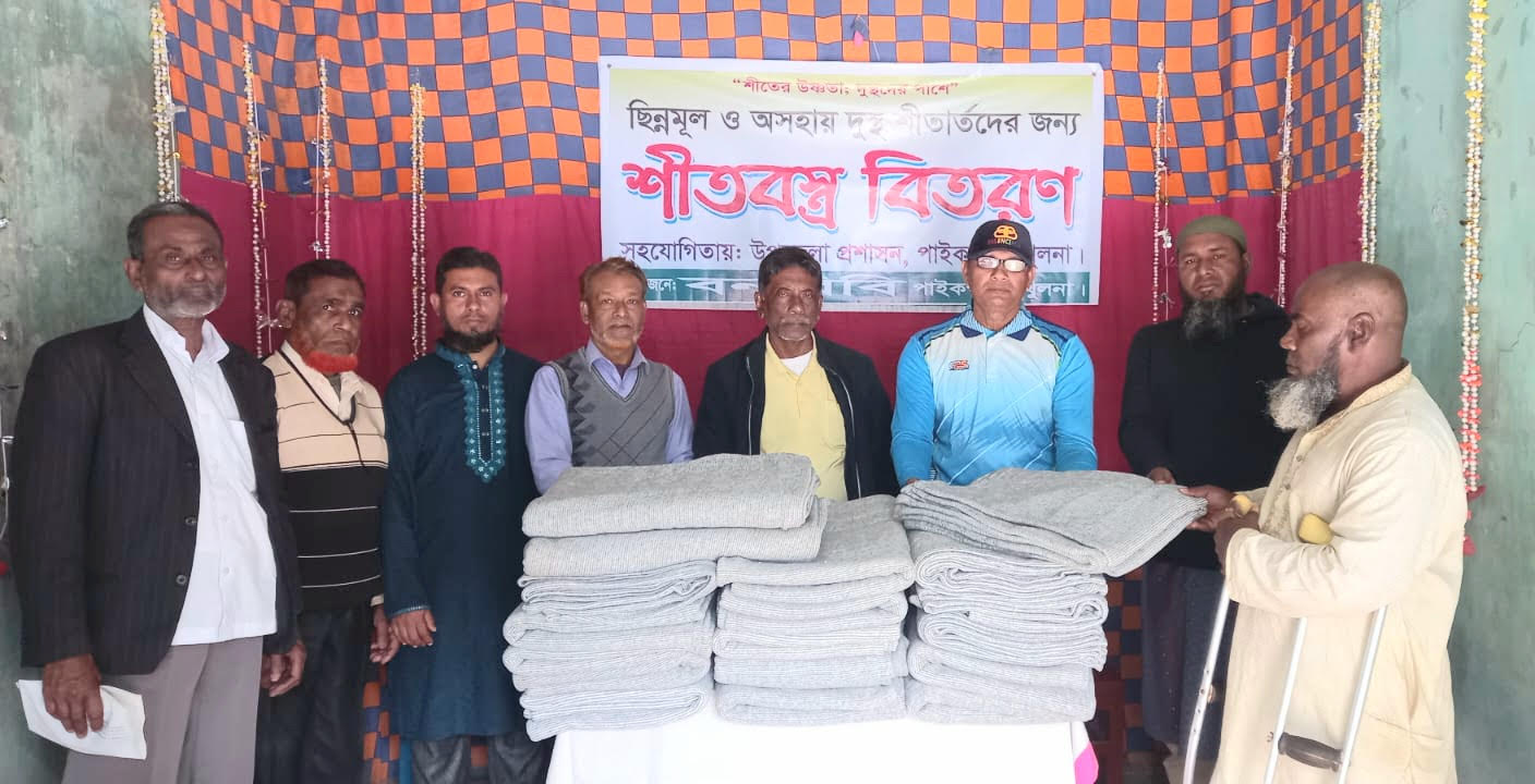 পাইকগাছা (খুলনা) প্রতিনিধি:: পরিবেশবাদী সংগঠন বনবিবি’র উদ্যোগে এবং উপজেলা প্রশাসনের সহযোগিতায় পাইকগাছায় অসহায় ও দুস্থ শীতার্ত মানুষের মাঝে শীতবস্ত্র বিতরণ করা হয়েছে। শনিবার (২৪ জানুয়ারি) সকালে পাইকগাছা নতুন বাজারস্থ বনবিবি কার্যালয়ে এ শীতবস্ত্র বিতরণ অনুষ্ঠান অনুষ্ঠিত হয়।