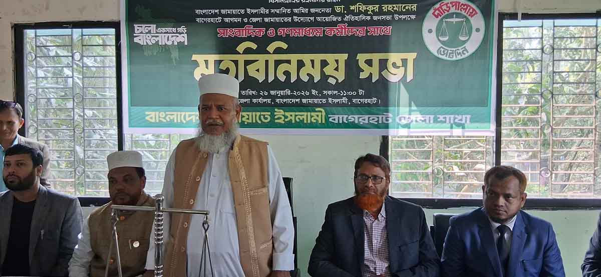 আজ বেলা সাড়ে ১১টায় বাগেরহাট জেলা জামায়াতে ইসলামীর উদ্যোগে মেগনিতলা জেলা জামায়াতের প্রধান কার্যালয়ে এ মতবিনিময় সভা অনুষ্ঠিত হয়। সভায় সভাপতিত্ব ও বক্তব্য রাখেন বাগেরহাট জেলা জামায়াতের আমির মাওলানা রেজাউল করিম।