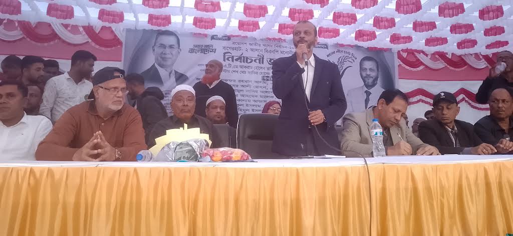 বৃহস্পতিবার (২৯ জানুয়ারি) বিকেলে বাগেরহাট সদর উপজেলার ১নং কাড়াপাড়া ইউনিয়ন বিএনপির আয়োজনে বাগেরহাট খুলনা মহাসড়কের মেঘনিতলা বাজারে উক্ত জনসভা অনুষ্ঠিত হয়। কাড়াপাড়া ইউনিয়ন বিএনপির সভাপতি আলোম মোল্লা সভাপতিত্বে প্রধান অতিথির বক্তব্য রাখেন জেলা বিএনপির আহবায়ক কমিটির সদস্য বাগেরহাট-২ (সদর- কচুয়া) আসনে ধানের শীষ প্রতীকের প্রার্থী ব্যারিস্টার শেখ মোঃ জাকির হোসেন। প্রধান অতিথি তার বক্তব্যে বলেন, বিএনপির চেয়ারম্যান তারেক রহমানকে প্রধানমন্ত্রী হিসেবে দেখতে হলে অবশ্যই সকলকে ঐক্যবধ্য ভাবে ধানের শীষকে বিজয়ী করতে হবে। আজ আমরা অধিকার আদায়ে রাজপথে নেমেছি। কোনো ভয়ভীতি দেখিয়ে বা ষড়যন্ত্র করে ধর্মের নামে প্রতারণা করে ধানের শীষের গণজোয়ার আটকানো যাবে না। জনগণের অধিকার ফিরিয়ে দিতে ও গণতন্ত্র পুনরুদ্ধারে ধানের শীষের