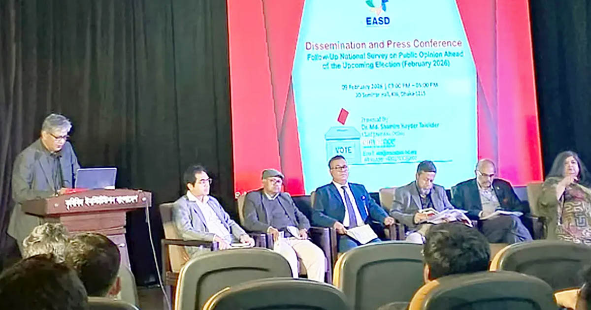 ভোটের বাকি আর মাত্র দুই দিন থাকতে এমিনেন্স অ্যাসোসিয়েটস ফর সোশ্যাল ডেভেলপমেন্ট ইএএসডি তাদের সম্ভাব্য ফলাফলভিত্তিক জরিপ প্রকাশ করেছে। এতে দেখা গেছে, জামায়াতে ইসলামীর তুলনায় বড় ব্যবধানে এগিয়ে রয়েছে বিএনপি।