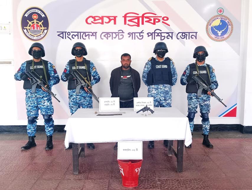 মনির হোসেন:: অপারেশন ডেভিল হান্ট ফেজ-২ অভিযানের অংশ হিসেবে খুলনায় কোস্টগার্ডের নেতৃত্বে যৌথ অভিযানে দেশীয় পিস্তল, তাজা গোলা ও ককটেলসহ একজনকে আটক করা হয়েছে।
