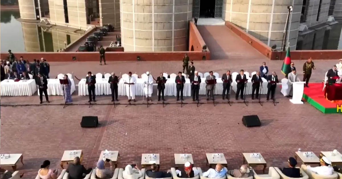ডেস্ক:: এক নতুন ভোরের সাক্ষী হলো বাংলাদেশ। দীর্ঘ প্রতীক্ষা এবং রাজনৈতিক চড়াই-উতরাই পেরিয়ে অবশেষে গঠিত হলো দেশের নতুন সরকার। ত্রয়োদশ জাতীয় সংসদ নির্বাচনে নিরঙ্কুশ বিজয়ী দল বিএনপির নেতৃত্বে আজ মঙ্গলবার বিকেলে রাষ্ট্র পরিচালনার আনুষ্ঠানিক দায়িত্ব গ্রহণ করেছেন ২৫ জন পূর্ণমন্ত্রী।